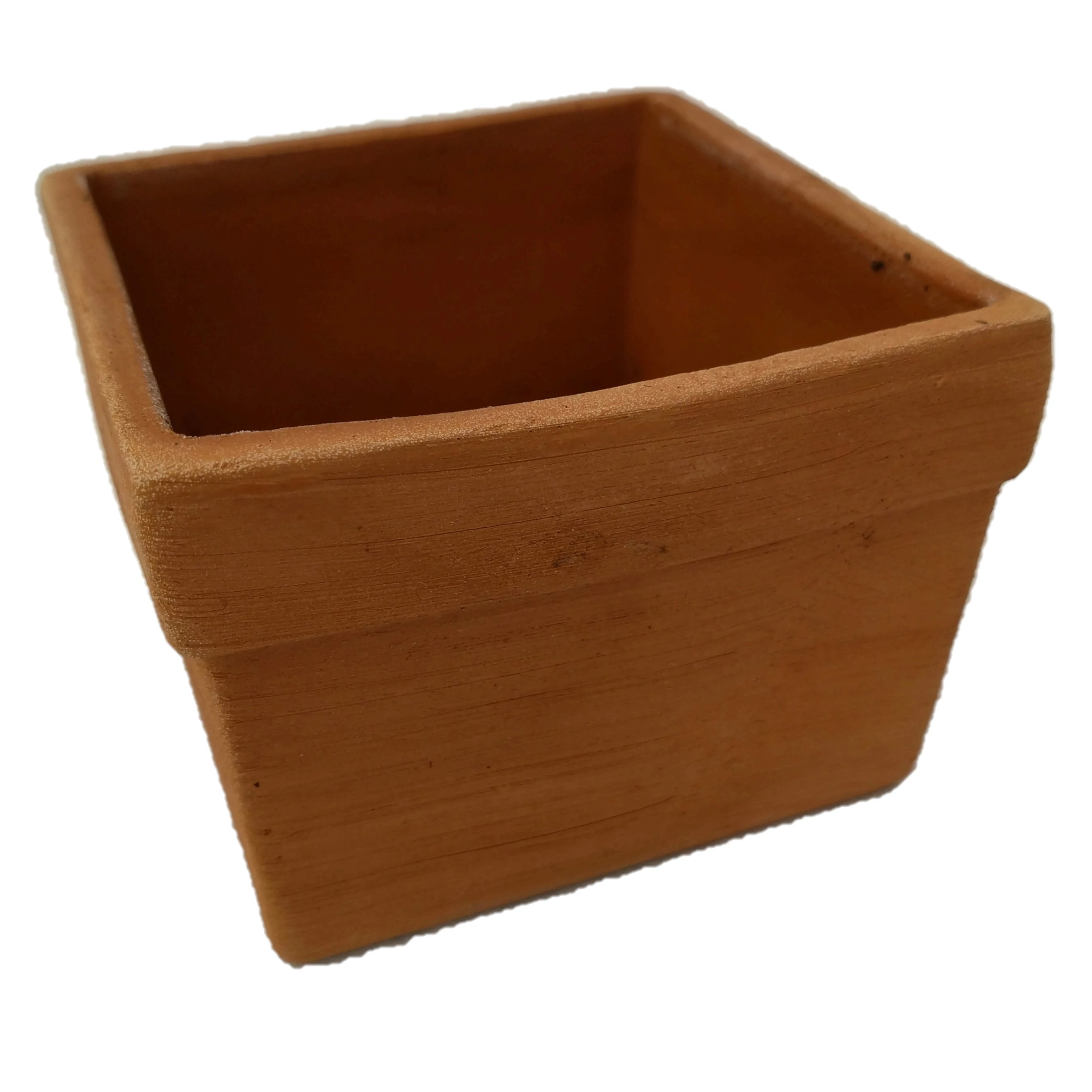 Kerek kicsi égetett agyag kaspó beltéri dekorációkhoz, növényekhez.