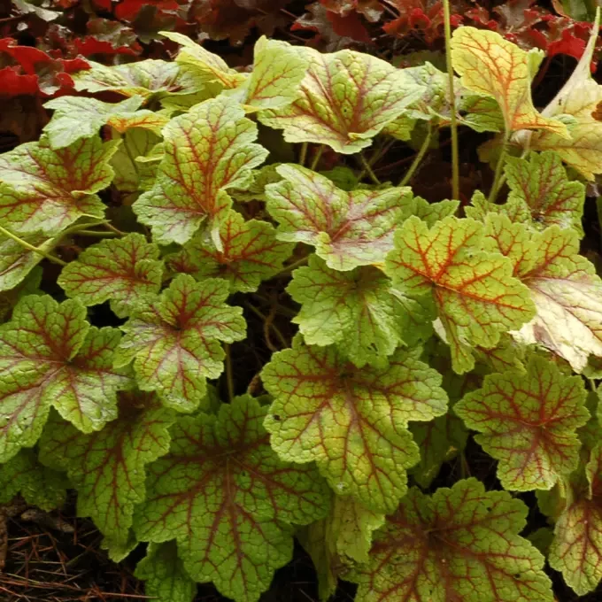 Bokros formájú, 22-25 cm magas és 30-60 cm széles évelő. Késő tavasszal kora nyárig nyílnak harang alakú, krémfehér virágai, melyek kb. 40 cm-re emelkednek a levelek fölé. Levelei kerekdedek, fodrosak, arany színűek, piros erezettel, nyár végére bronzos árnyalatúvá színeződnek. Napos, vagy félárnyékos helyre ültessük, de a tűző nap káros lehet a növény leveleinek. Talaja legyen jó vízelvezetésű, és lehetőség szerint nedves, de a pangó vizet nem kedveli. Ideális számára a tápanyagdús talaj. Sokrétűen felhasznáható, évelőágyásokban, vegyes ágyásokban vagy szegélyként ágyásokhoz, de sziklakertekben is jól mutat. Vágott virágnak is alkalmas. Balkonládában is nevelhető. Az elszáradt virágokat és leveleket késő ősszel vagy tavasszal távolítsuk el a növényről, hogy meg tudjon újulni. Kártevői, betegségei nincsenek, betegségekkel szemben ellenálló.