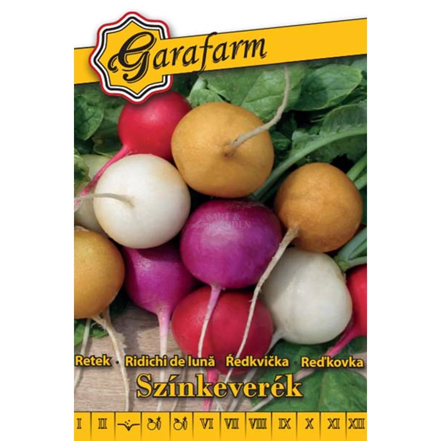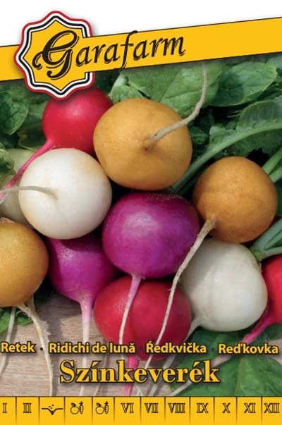 Különböző színű hónapos retekfajták kevveréke, lehetőséget ad a hosszabb idejű termés betakarításra. A gumók ropogósak, enyhén fűszeres ízűek, kiválóan alkalmasak salátákba, és ételek dekorációjához.