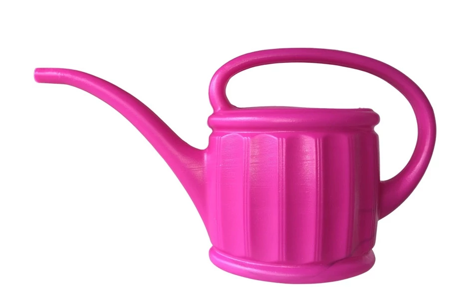 Rózsaszín, műanyag locsolókanna gyermekek számára.