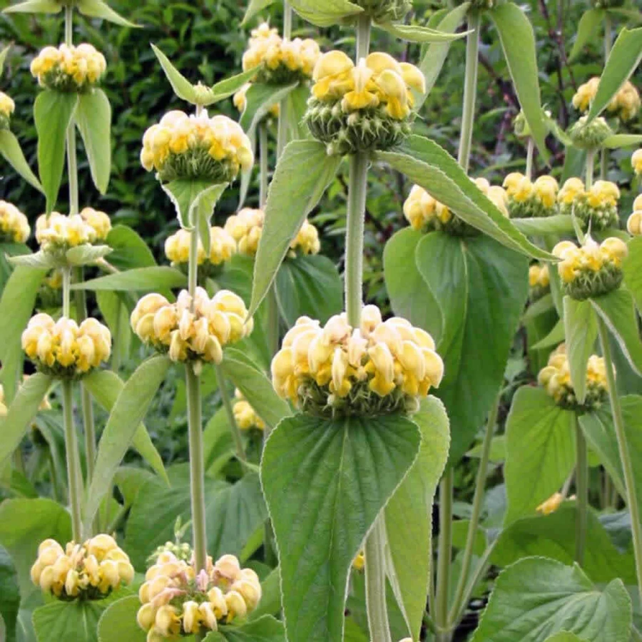 20 - 40 cm magas, felálló szárú, lassan terjedő évelő. Tőlevelei nagyméretűek, szív alakúak és örökzöldek, szárlevelei széles, lándzsás alakúak, keresztben átellenesen állnak. Virágzatát sárga színű ajakos virágok alkotják, melyek álörvökben állnak. Virágzása jellemzően júniustól augusztusig tart. Napos, világos, vagy félárnyékos szereti, jó szerkezetű talajba ültessük. Legszebben mérsékelt vízellátás mellett fejlődik. Jól mutat évelőágyásban vagy nagyobb méretű sziklakertben. Elszáradt virágzatával egész télen is mutatós, tavasszal vágjuk vissza száraz részeit. Lombja jó talajtakaró. A "wintergarden"-ből kihagyhatatlan évelő.