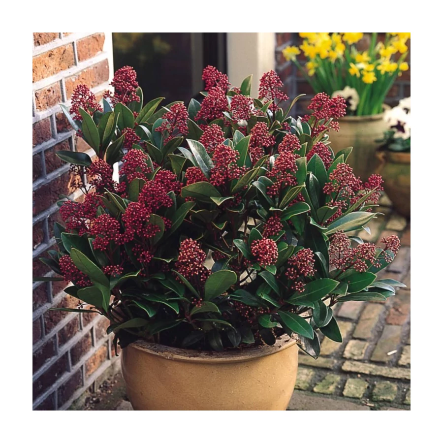 A Skimmia japonica 'Rubella' egy különösen mutatós, örökzöld cserje, amely egész évben díszíti a kertet, de igazi látványossággá ősszel és tavasszal válik. A fajta jellegzetességei a sötétpiros bimbók, amelyek már ősszel megjelennek, és egészen kora tavaszig megmaradnak, amikor aztán illatos, fehér virágokká nyílnak. Kompakt növekedésű, lassan terjeszkedő fajta, így ideális kisebb kertekbe, előkertekbe vagy árnyékos balkonládákba is.