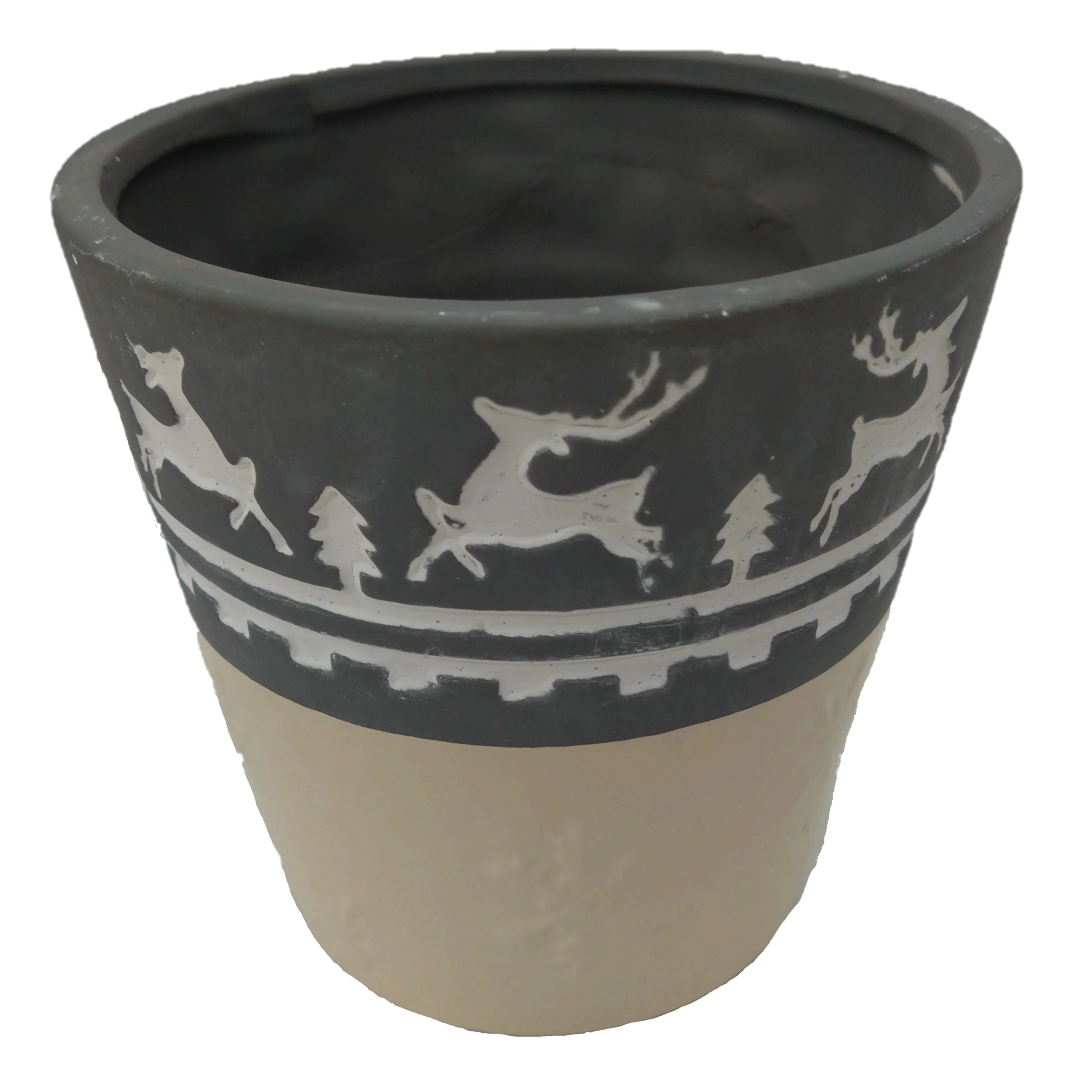 Szarvas mintás kaspó szürke-fehér 11 cm