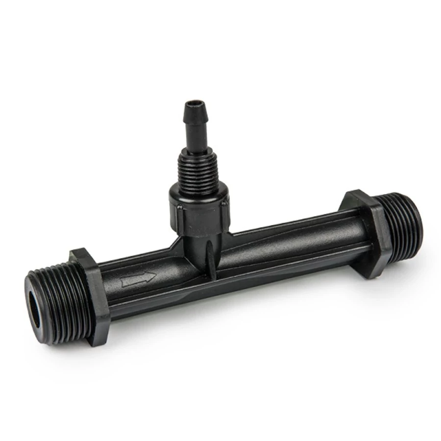 A Venturi cső injektor ideális megoldás folyadékok (például tápoldatok, vegyszerek) bejuttatására az öntözőrendszerbe a Venturi-elv segítségével. Működése egyszerű és megbízható: a vízáram nyomáskülönbséget hoz létre, amely beszívja és bekeveri az adagolandó anyagot a rendszerbe.